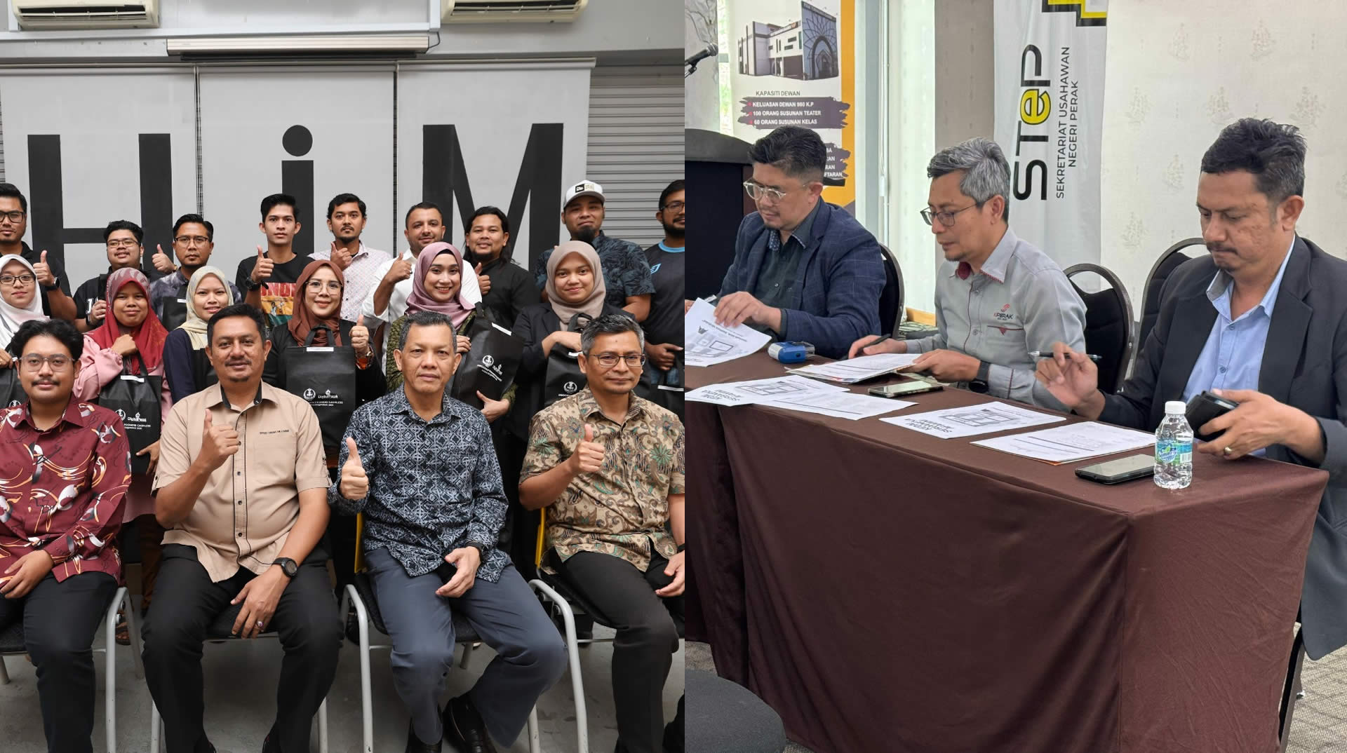 Hari ini, 34 usahawan tempatan dipilih sebagai penerima geran dalam majlis penyerahan yang berlangsung di Hub Inovasi & Multimedia (HiM). Majlis disempurnakan oleh Ketua Pegawai Eksekutif Digital Perak, Mohamad Suhaimi bin Mohamad Tahir, bersama Timbalan Pengarah STeP, Syed Omar Huzaimi bin Syed Ghaib, dan Pegawai Program Perak Halal, Muhammad Alif bin Anas.